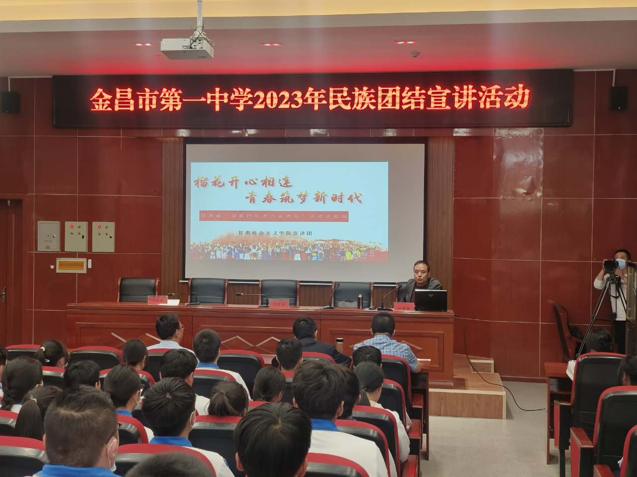 宣讲以“石榴花开心相连,青春筑梦新时代”为主题,紧扣铸牢中华民族共同体意识主线,结合发生在金昌大地上鲜活生动的民族团结故事,从“伟大祖国,共同缔造;伟大梦想,团结奋斗;伟大征程,强国有我;如意甘肃,共同建设”四个方面对铸牢中华民族共同体意识的重大意义、深刻内涵、目标要求以及新时代青少年应该怎么做,进行了全面系统、深入浅出的讲解。