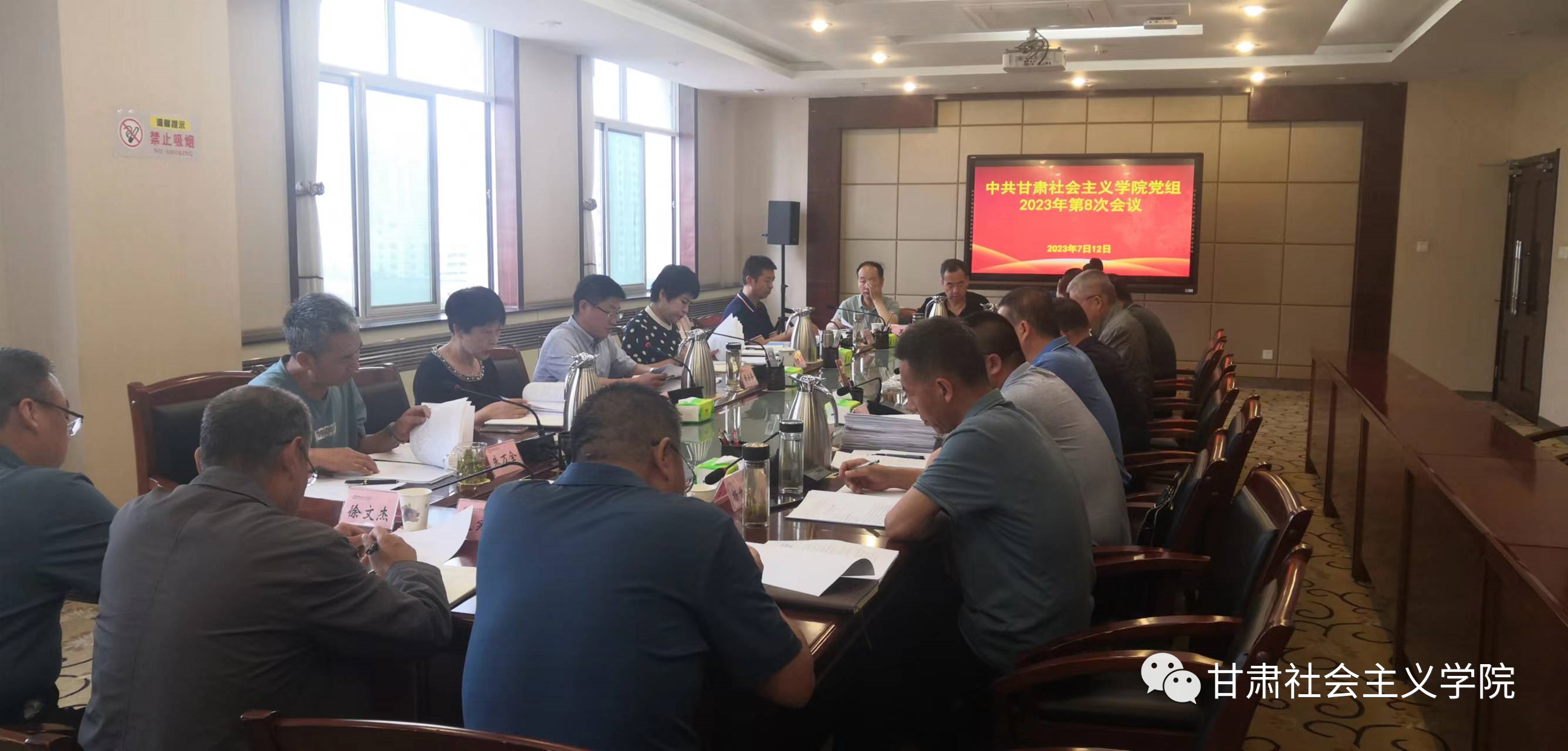 7月12日,甘肃社会主义学院召开党组会议,认真落实“第一议题”制度,跟进学习习近平总书记最新重要讲话重要批示指示精神,研究学院贯彻落实意见。省委统战部副部长、院党组书记姬安岳主持会议并讲话,各院领导出席会议,驻部纪检监察组二级巡视员赵帷琴出席指导会议。