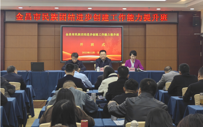 12月4日至12月8日,“金昌市民族团结进步创建工作能力提升班”在甘肃省社会主义学院举办,金昌市民族团结进步示范区示范单位负责人、民族团结进步教育基地负责人、金川集团公司、八冶建设集团公司党委统战部负责人等共计48人参加培训。开班式上甘肃社会主义学院党组成员、副院长蒲晓贞致辞,金昌市委常委、组织部部长、统战部部长赵小庚出席并讲话。