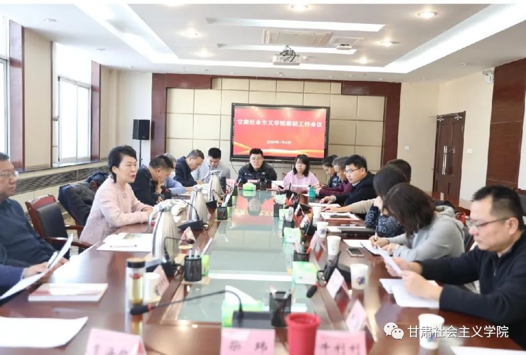 新年伊始,万象更新。1月4日上午,甘肃社会主义学院召开2024年第一次教研工作会议,及时传达学习领会第十三次全国社会主义学院教学工作会议精神,讨论2024年教学创新工程项目落实举措。院党组成员、副院长蒲晓贞主持会议,统战理论教研部、民族宗教教研部、中华文化教研部全体教师和教务处、培训进修处处长参加会议。