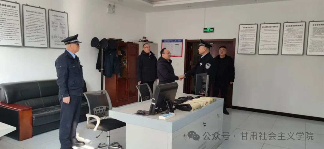 新春将至,岁寒情暖。2月9日上午,院党组成员、副院长敏隆邦同志带领有关处室人员在大门门卫室、消防监控室、锅炉房等区域检查指导治安保卫、火灾防范、供暖供电、物业服务等工作,代表院党组看望慰问值班人员,转达省委统战部副部长、院党组书记、分管日常工作副院长姬安岳同志的诚挚问候和新春祝福。并希望大家在值班值守期间继续发扬爱岗敬业的精神,以更加认真的态度、更加积极的作为,值好班、站好岗,为全院教职员工和院区住户平安、欢度春节创造良好的环境。