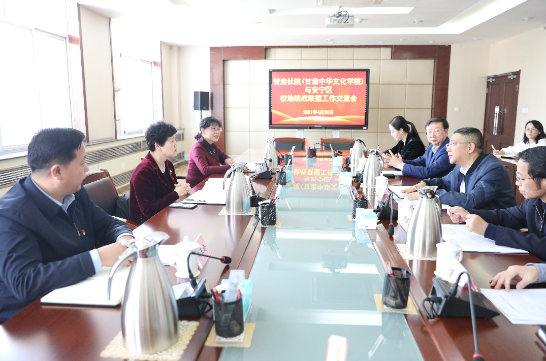 4月30日(星期五)上午,甘肃社会主义学院(甘肃中华文化学院)与安宁区“校地统战联盟”工作交流会议在我院召开。省委统战部副部长、院党组书记、常务副院长焦玉兰出席会议并做了讲话。学院副院长李晓霞主持会议,安宁区委统战部、区人大、区政协相关领导参加了交流会。