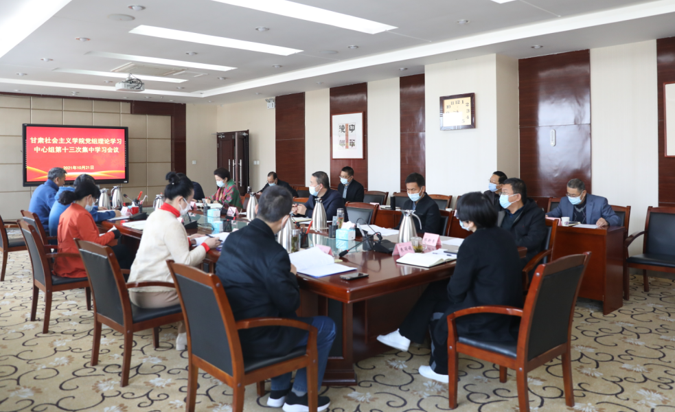 2021年10月 21日上午,甘肃社会主义学院(甘肃中华文化学院)党组召开理论学习中心组第十三次会议,院领导班子成员分别领学了习近平总书记在中央人才工作会议、中央人大工作会议、纪念辛亥革命110周年大会上的重要讲话,习近平总书记在中共中央政治局第三十三次集体学习时的重要讲话和在陕西榆林考察时的重要讲话精神,《求是》杂志发表的习近平总书记重要文章《扎实推动共同富裕》;传达了学习了省委组织部转发的《中共中央组织部关于领导干部及时报告个人有关事项的通知》《省委直属机关工委指导督促省直部门党组(党委)落实机关党建主体责任的若干措施》;通报了当前疫情防控严峻形势,对学院疫情防控工作提出了明确要求。