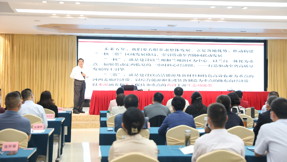 为了深入学习贯彻习近平总书记关于推进黄河流域生态保护和高质量发展的重要论述和习近平总书记对甘肃重要讲话和指示精神,贯彻落实党中央、国务院《黄河流域生态保护和高质量发展规划纲要》,2022年9月19日,甘肃社会主义学院(甘肃中华文化学院)邀请到省人大常委会副主任、党组成员,西北师大地环学院研究员陈克恭同志作“构建黄河上游生态功能带,助推‘一核三带’区域发展格局”专题辅导报告。省委统战部副部长、甘肃社会主义学院(甘肃中华文化学院)党组书记、常务副院长焦玉兰主持报告会。甘肃社会主义学院院领导宋健、李晓霞、蒲晓贞、石岱千,“全省党外干部进修班”学员,甘肃社会主义学院(甘肃中华文化学院)全体教职工约150余人聆听了报告。
