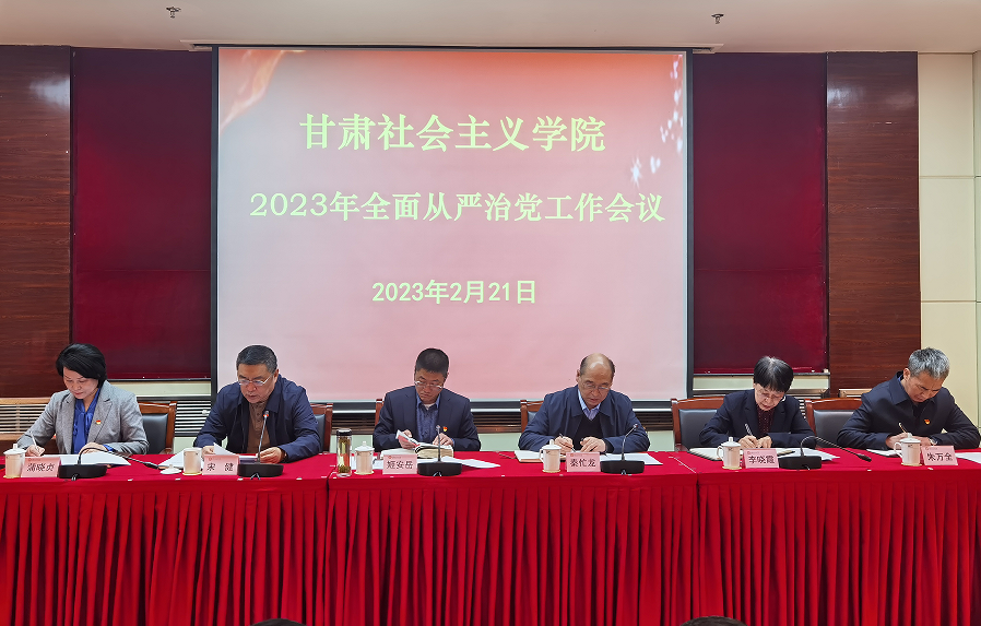会议强调,2023年是全面贯彻落实党的二十大精神开局之年,甘肃社会主义学院在省委的坚强领导下,在省委统战部的有力指导下,在驻部纪检监察组的精心指导和有力监督下,坚持以习近平新时代中国特色社会主义思想为指导,全面贯彻落实党的二十大精神,中央纪委二次全会和省纪委二次全会精神,坚持全面从严治党战略方针,牢记全面从严治党永远在路上、党的自我革命永远在路上,以开展“三抓三促”行动为契机,从严从实抓好政治建设,确保中央决策部署和省委工作要求在学院精准落地;从严从实抓好思想建设,用习近平新时代中国特色社会主义思想凝心铸魂;从严从实抓好组织建设,扎实推动机关党建高质量发展;从严从实抓好作风建设,促进全院教职工作风大转变;从严从实抓好纪律建设,坚持以严的基调强化正风肃纪;从严从实抓好制度建设,完善办学治院管理监督制约机制,为新时代统一战线教培事业高质量发展提供坚强保证。