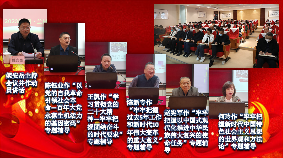 培训期间,学院五名教师围绕“以党的自我革命引领社会革命--百年党建的历史回顾与经验启示”“牢牢把握团结奋斗的时代要求”“过去5年工作和新时代10年伟大变革的重大意义”“以中国式现代化推进中华民族伟大复兴的使命任务”“新时代中国特色社会主义思想的世界观和方法论”等五个专题进行辅导,帮助广大教职工进一步加深了对党的二十大精神的理解和把握。