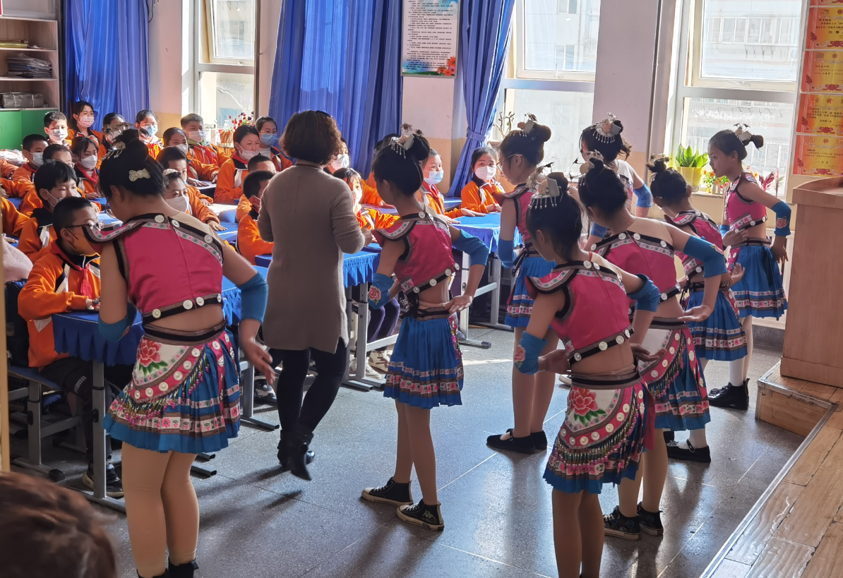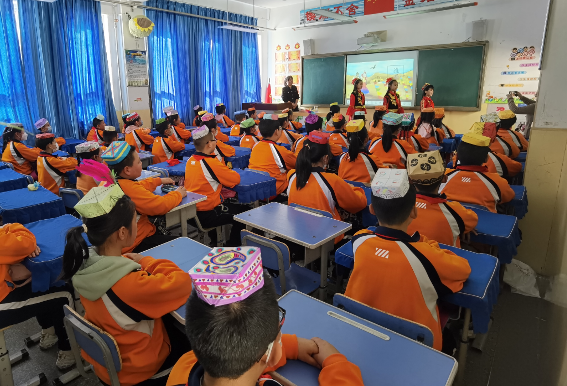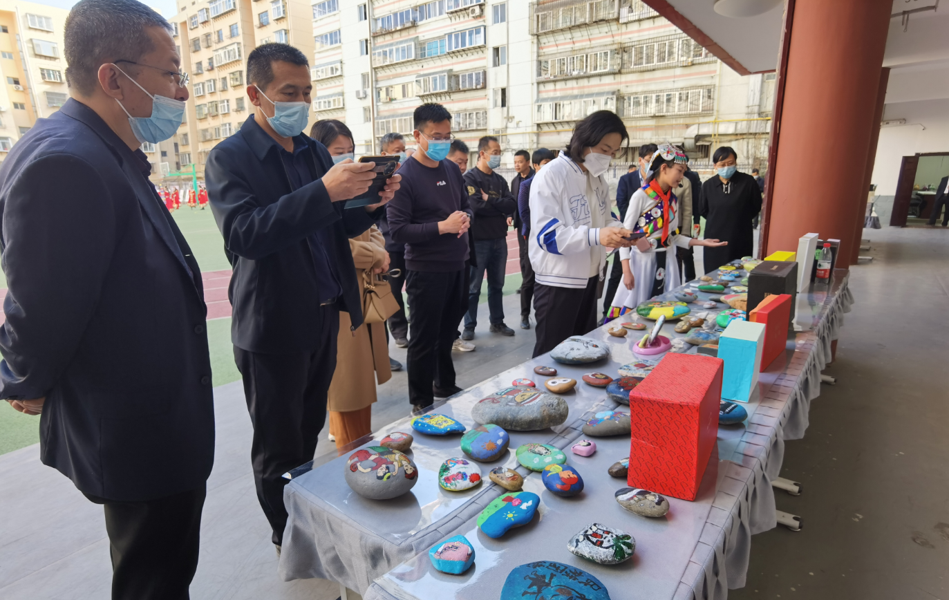 在福利路第三小学,通过小小讲解员的带领,近距离欣赏了每个班级的民族团结主题活动。新疆舞、孔雀舞、民族秀等民族特色节目赢得了阵阵掌声,剪纸、石头画、纸盘画等民族手工作品引来了声声赞叹,还有节奏感十足、欢快活泼的民俗体育活动——竹竿舞吸引了众多参观者的驻足欣赏。最后,在师生带领下,学员们共同跳起了欢快奔放的锅庄舞,和着优美的旋律、踏着轻快的节拍,结束了当天的学习。