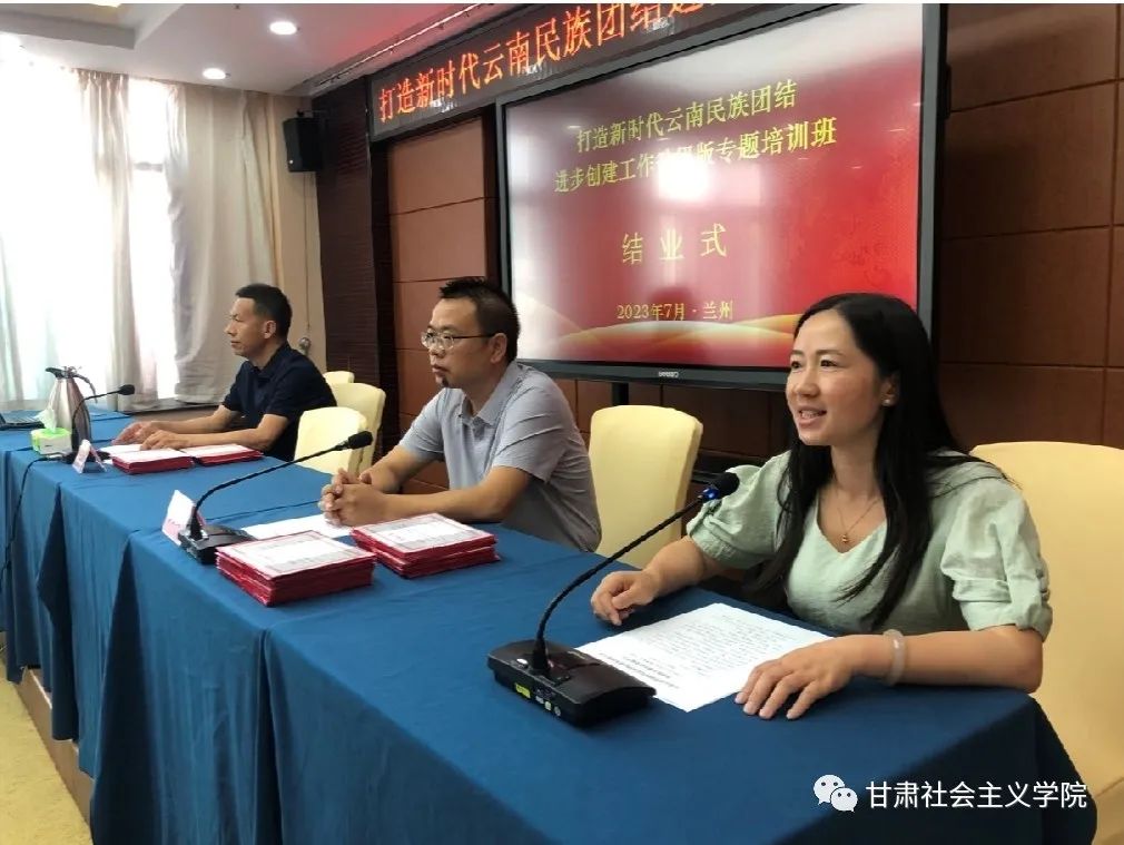结业式上,学员代表表示,此次甘肃社会主义学院的培训课程安排合理、内容丰富,实践教学和课堂讲授有机结合,社院的老师认真负责、热情周到,让我们充分感受到了甘肃厚重的文化底蕴和中华民族悠久的历史,领略到了九曲黄河万里黄沙的磅礴大气和黄土高原的广袤无垠,见证了丝绸之路的璀璨繁华和华夏文化8000年的悠久文化;开阔了视野、启迪了思维、更新了观念、明确了方向,对党的二十大精神和习近平总书记关于加强和改进民族工作的重要思想有了深入系统全面的理解和把握,不断深化了对“四个共同”的理解,进一步认识到民族团结进步创建的重要性。