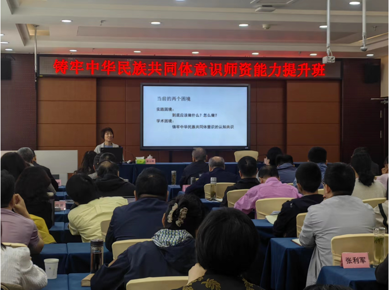 为了深入学习贯彻落实习近平总书记关于加强和改进民族工作的重要思想,切实贯彻落实《干部教育培训工作条例》,学习领会第十三次全国社院教学工作会议精神,进一步提高学院教师铸牢中华民族共同体意识教学研究能力,推动铸牢中华民族共同体意识教育培训基地建设,5月8日,我院举办了“铸牢中华民族共同体意识师资能力提升班”,邀请北京大学四部委“铸牢中华民族共同体意识研究基地”首席专家马戎教授、浙江大学四部委“铸牢中华民族共同体意识研究基地”常务副主任菅志翔教授为培训班进行了专题辅导。