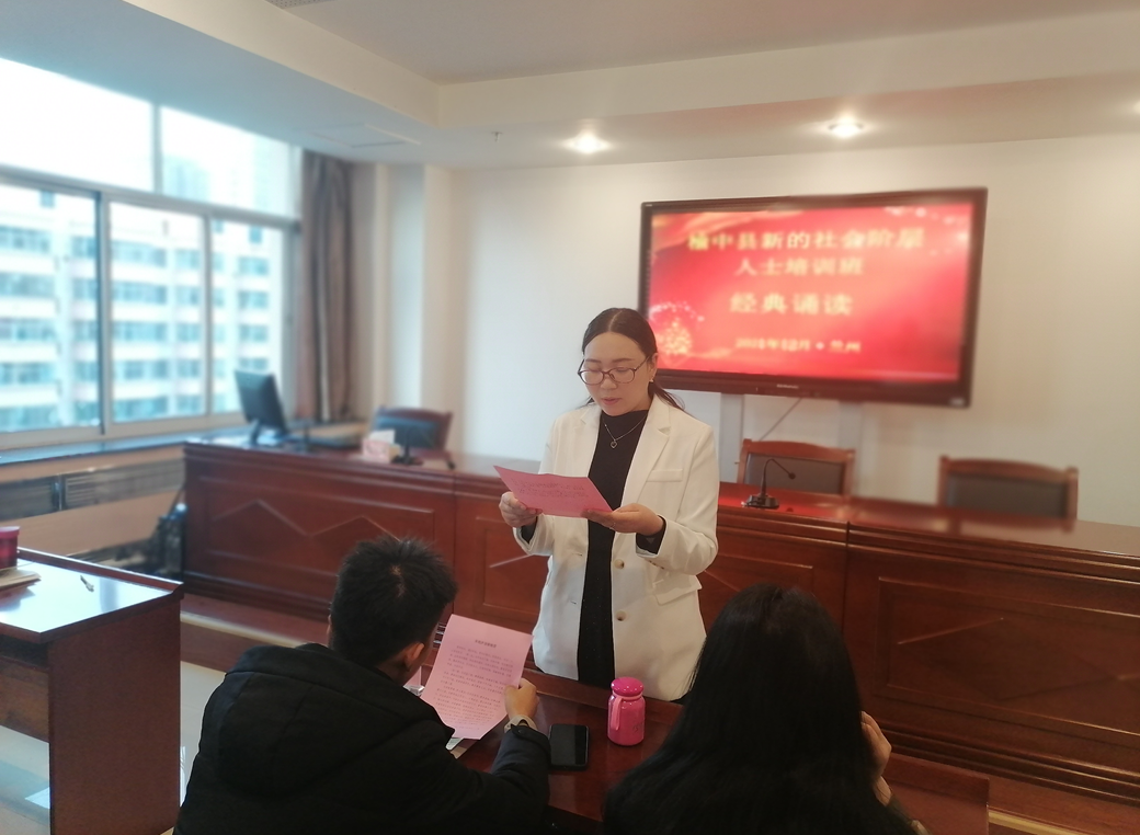 12月15日,榆中县新的社会阶层人士培训班在甘肃社会主义学院开班。榆中县委常委、统战部长王延宏出席开班仪式并讲话。希望各位学员在培训期间专心听讲、充分交流、认真学习,做到“学、思、践、悟”相结合,做到思想认识上有新的提高、业务能力上有新的收获。来自榆中县的50余名新阶层人士代表参加了此次培训。