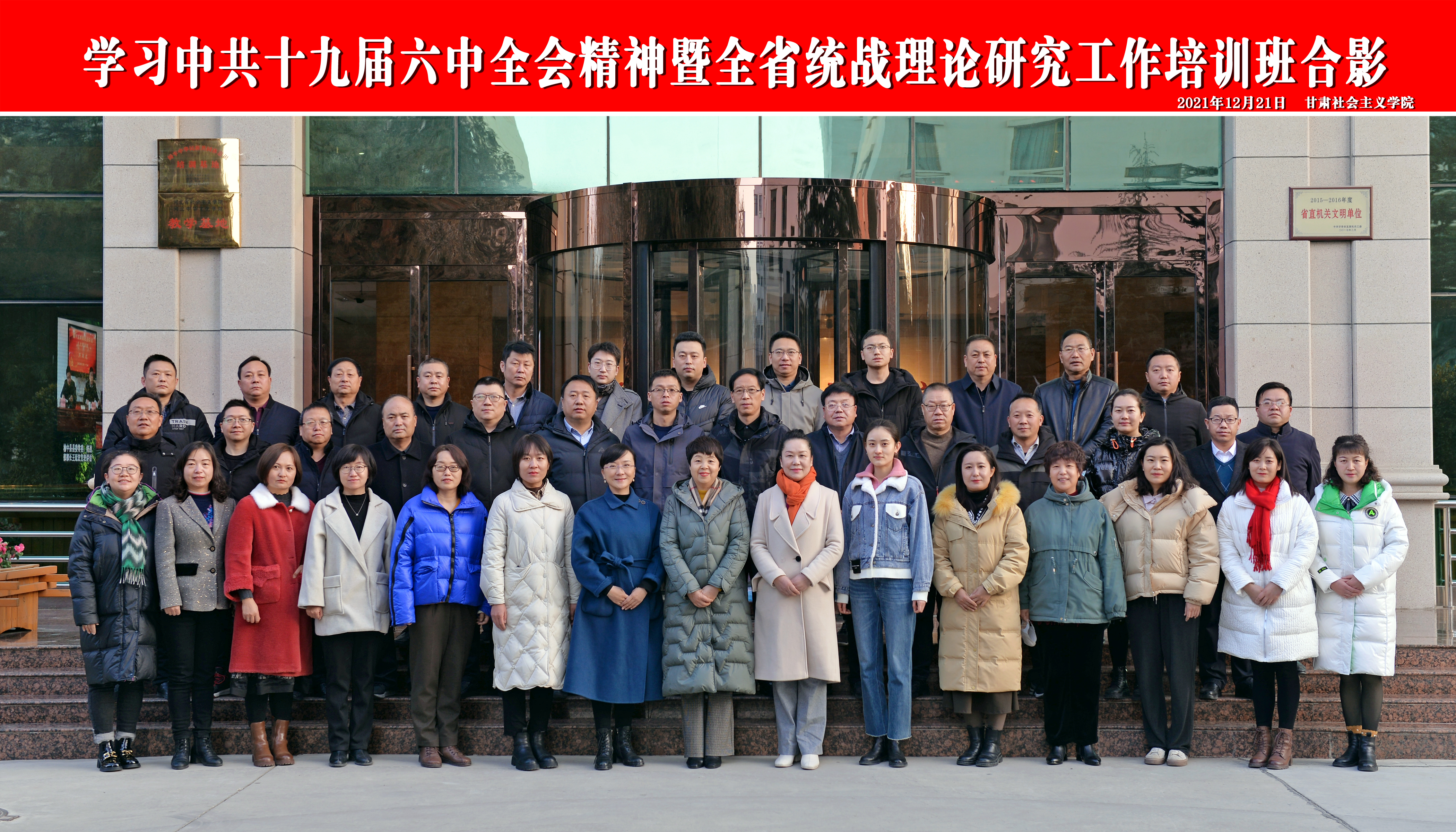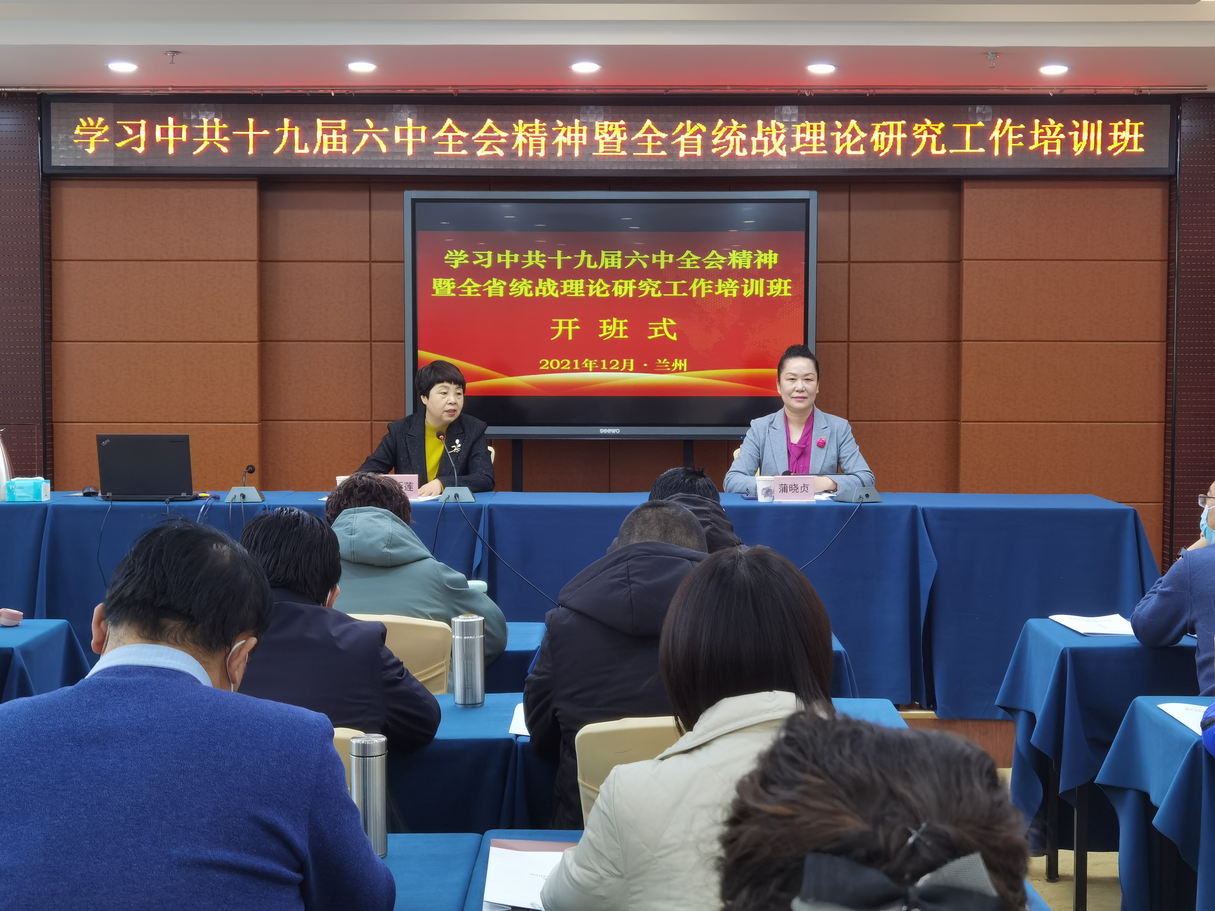 12月21日,民盟甘肃省委“学习中共十九届六中全会精神暨全省统战理论研究工作培训班”开班式在甘肃社会主义学院举行。本期培训班为期4天,来自全省各市县委员会、省直基层组织、各专委会统战理论研究工作者、盟省委统战理论研究会特约研究员共计40多人参加了本次专题培训。省政协副秘书长、民盟甘肃省委专职副主委鲜新莲出席并讲话,甘肃社会主义学院党组成员、副院长蒲晓贞主持会议并在会后做了题为《习近平总书记关于加强和改进统一战线工作重要思想》的讲座。