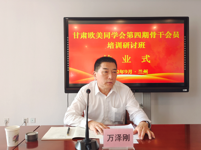 9月14日至17日,甘肃欧美同学会第四期骨干会员培训研讨班在甘肃社会主义学院举办。这次培训研讨班的主题是:高举习近平新时代中国特色社会主义思想伟大旗帜,深入学习贯彻中央统战工作会议和省第十四次党代会精神,总结回顾二届理事会以来的工作,分析甘肃欧美同学会的方位使命和短板不足,谋划部署下一阶段工作,砥砺奋进、守正创新,奋力开创甘肃留学人员事业新局面,以优异成绩迎接党的二十大胜利召开。9月17日下午,培训研讨班召开结业座谈会。中共甘肃省委统战部副部长、省政府侨办主任、省侨联党组书记万泽刚出席会议并讲话。
