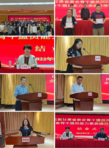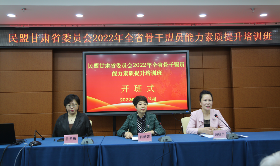 2022年9月19日,民盟甘肃省委2022年骨干盟员培训班在甘肃社会主义学院举办,来自全省39名骨干盟员参加了培训。开班式上,民盟甘肃省委专职副主委鲜新莲代表民盟甘肃省委做了动员讲话,她强调骨干盟员要从自身特点出发,从具体工作实际出发,学深悟透、学思结合、学以致用。通过本次培训,学到新知识、新理论、新思想,悟到新理念、新思路、新举措,真正做到学有所获、学有所谋、学以致用。甘肃社会主义学院副院长蒲晓贞主持开班式并发言。