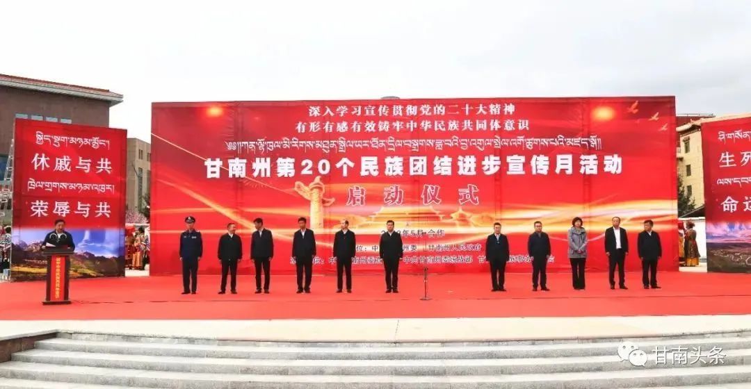 5月9日,以“深入学习宣传贯彻党的二十大精神,有形有感有效铸牢中华民族共同体意识”为主题的甘南州第20个民族团结进步宣传月活动启动仪式在合作市香巴拉主题文化广场举行。