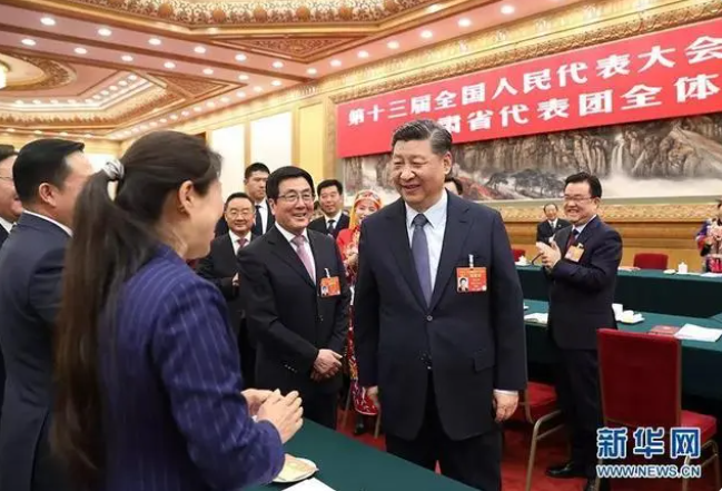 3月7日,中共中央总书记、国家主席、中央军委主席习近平参加十三届全国人大二次会议甘肃代表团的审议。 新华社记者 鞠鹏 摄