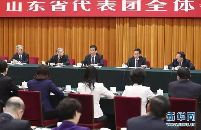 栗战书在山东代表团参加审议。在认真听取刘家义、龚正、郭锐等代表发言后,栗战书说,中国特色社会主义进入新时代,要更加自觉地维护习近平总书记党中央的核心、全党的核心地位,维护党中央权威和集中统一领导,以习近平新时代中国特色社会主义思想领航定向、凝心聚力,指导和推进各项工作。希望山东认真学习贯彻习近平总书记对山东工作的重要指示要求,贯彻新发展理念,探索以生态优先、绿色发展为导向的高质量发展新路子,推动经济发展质量变革、效率变革、动力变革。把打好脱贫攻坚战与实施乡村振兴战略有机衔接起来,打造乡村振兴的齐鲁样板。繁荣发展文化事业,大力弘扬沂蒙精神,为新时代改革发展提供强大精神动力,努力实现习近平总书记提出的“走在前列、全面开创”的殷切期望。