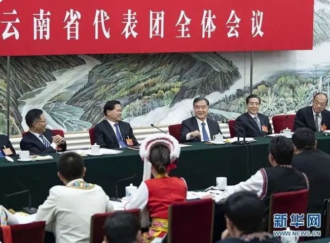 汪洋分别参加台湾代表团、云南代表团审议。在台湾代表团,汪洋在认真听取符之冠、陈云英、陈军等代表发言后指出,习近平总书记在《告台湾同胞书》发表40周年纪念会上的重要讲话,是指引新时代对台工作的纲领性文献。要学深悟透讲话的精神实质和核心要义,深刻认识两岸统一是历史大势,牢牢把握对台工作正确方向。要广泛深入听取台湾同胞的意见,完善配套政策,把促进两岸经济文化交流合作“31条措施”等惠台举措落到实处,深化两岸融合发展。要坚持一个中国原则和“九二共识”,坚决反对“台独”,团结更多台湾同胞共担民族大义,为推动两岸关系和平发展、推进祖国和平统一进程作出更大贡献。在云南代表团,汪洋认真听取阮成发、马正山、玉龙等代表的发言,充分肯定过去一年云南改革发展取得的成绩。他希望云南深入贯彻习近平总书记对云南工作的重要指示精神,坚定不移落实党的民族政策和宗教工作基本方针,大力帮助人口较少民族和“直过民族”发展,努力打造民族团结进步示范区。要坚决打好脱贫攻坚战,努力攻克深度贫困堡垒,着力提高脱贫质量,确保全面小康路上一个都不掉队。