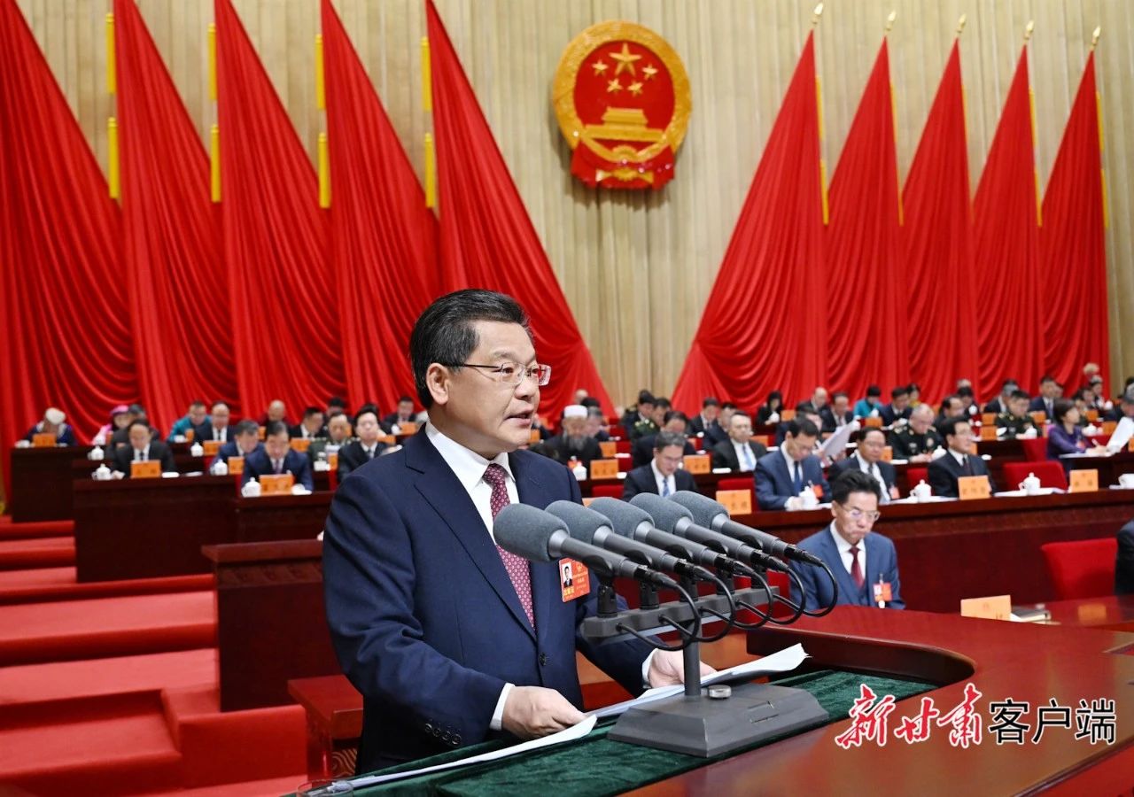 任振鹤在报告中指出,今年是中华人民共和国成立75周年,是实现“十四五”规划目标任务的关键一年。今年政府工作的总体要求是:以习近平新时代中国特色社会主义思想为指导,全面贯彻党的二十大和二十届二中全会精神,深入落实习近平总书记对甘肃重要讲话重要指示批示精神,坚持稳中求进工作总基调,完整、准确、全面贯彻新发展理念,加快构建新发展格局,着力推动高质量发展,统筹扩大内需和深化供给侧结构性改革,统筹新型城镇化和乡村全面振兴,统筹高质量发展和高水平安全,加力实施“四强”行动,深入做好“五量”文章,扎实推进积石山县地震灾区灾后重建,促进经济运行持续向好、动力活力持续增强、社会预期持续改善、风险隐患持续化解、民生福祉持续增进、社会大局持续稳定,推动经济实现质的有效提升和量的合理增长,奋力谱写全面建设社会主义现代化幸福美好新甘肃崭新篇章。做好今年政府工作,将牢牢把握高质量发展这个新时代的硬道理,把“稳中求进、以进促稳、先立后破”的要求贯穿各项工作之中。坚持以争先志气、赶超意识积蓄高质量发展势能,抢抓战略机遇,放大比较优势,立足国家所需,发挥甘肃所能,跳起摘桃,争先进位,以一域之光为全局添彩。坚持以科技引领、产业升级厚植高质量发展根基,加快转方式、调结构、提质量、增效益,超前布局未来产业,大力发展新质生产力,塑造现代化产业体系新优势。坚持以改革办法、市场手段释放高质量发展活力,用好“关键一招”,抓住“最大机遇”,破解要素制约,打通发展堵点,加大机制创新,充分激发各类经营主体内生动力和创新活力。坚持以福祉增进、品质提升夯实高质量发展底色,用心用情保障改善民生,标本兼治保护生态环境,高效统筹发展和安全,让全省人民的获得感幸福感安全感更加充实、更有保障、更可持续。坚持以实干担当、敢作善为凝聚高质量发展合力,善于抓主抓重,讲求策略方法,政策协同发力,工作同频共振,唱响高质量发展“大合唱”。