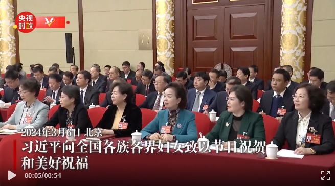 在“三八”国际劳动妇女节即将到来之际,习近平代表中共中央,向参加全国两会的女代表、女委员、女工作人员,向全国各族各界妇女,向香港特别行政区、澳门特别行政区和台湾地区的女同胞、海外女侨胞,致以节日祝贺和美好祝福。