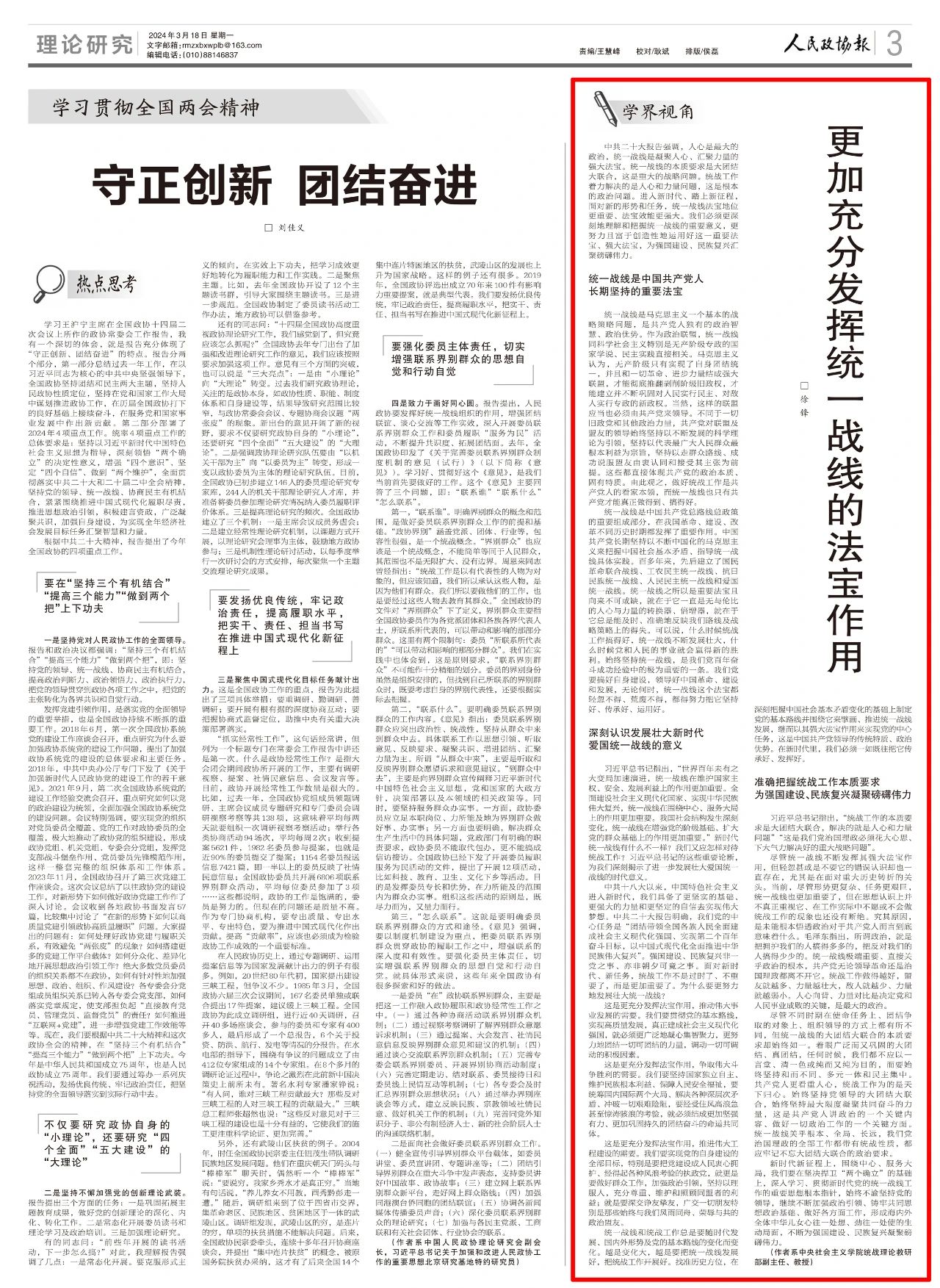 理论 | 更加充分发挥统一战线的法宝作用