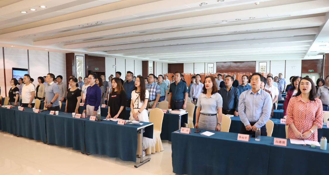情景教学前,全体肃立,奏唱国歌,默哀先烈,寄托对革命先辈的崇敬与哀思。《学党史、诵家书、传承红色基因》红色家书情景教学党课由《王泉媛不忘初心“寻党书”》《陈觉、赵云霄伉俪情深“诀别书”》《赵一曼烽火母爱“绝笔书”》《左权浴血疆场“念妻书”》《方志敏矢志不渝“明志书”》5封家书组成。5封家书或写给国家、或写给爱人、或写给儿女,以血为墨,以字凝泪。一封封家书诠释着革命先烈们难舍的亲情、坚贞的爱情、忠贞不渝的家国情。诵读家书,“声”如人心。红色家书的诵读进一步激励了全体教职工学史明理、学史增信、学史崇德、学史力行。最后,全体与会同志肃立,全体党员面对党旗,举起右手,重温入党誓词,坚定如磐初心,践行使命担当。