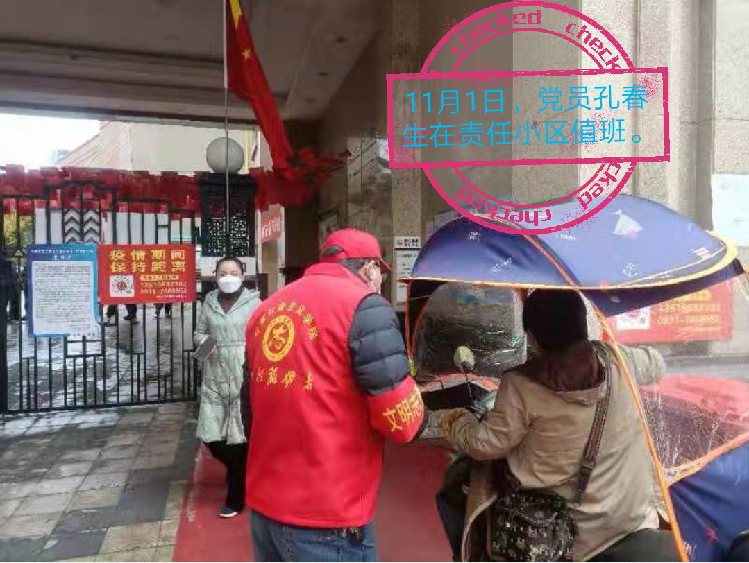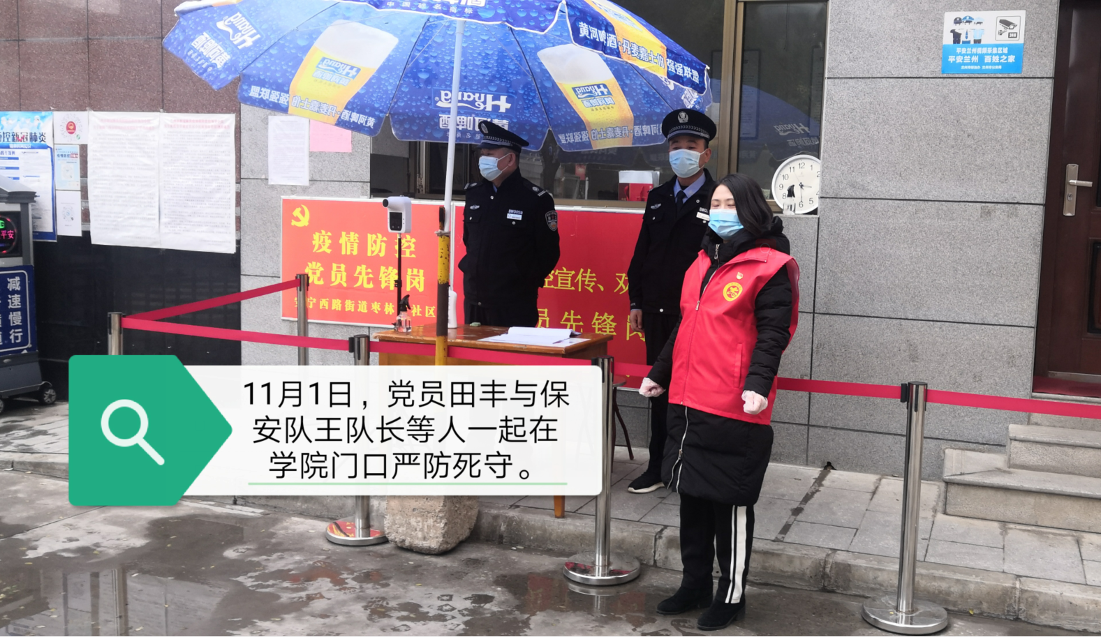志愿服务让疫情防控更有力量。10月28日,接到省委直属机关工委下发的《关于选派省直机关党员干部深入社区做好疫情防控工作的紧急通知》后,学院机关党委迅速动员,广大党员干部积极响应,踊跃报名,按照省上的统一安排,由敬国成、王琳、柴玲、孔春生、康家玮5名党员组成的志愿者小分队赶赴安宁区基层社区支援疫情防控工作。与此同时,学院全体党员和疫情防控人员以及3名驻村干部分别在学院门口、帮扶村口设卡严防死守。一面党旗、一个简易的帐篷、一张登记台、几张凳子、几道警戒线……经过简单的布置后,这就变成了党员志愿者办公场地,构筑起了“保卫群众”最坚实的志愿者防线。在那里,他们既是安全守护员、政策宣传员,又是检疫防疫员、采购消杀员;既是为居民们考虑的家人,更是为大家服务的“店小二”……他们牢记志愿者“零感染”才是对疫情防控的最大贡献,认真学习疫情防控规定,切实加强自防护,坚决服从党组织的统一调派,坚持科学合理提供志愿服务,精准聚焦卡口值班值守,做到“到位不越位”“帮忙不添乱”,敢于担当,严谨细致、耐心服务,用实际行动诠释着一名共产党员的责任担当。