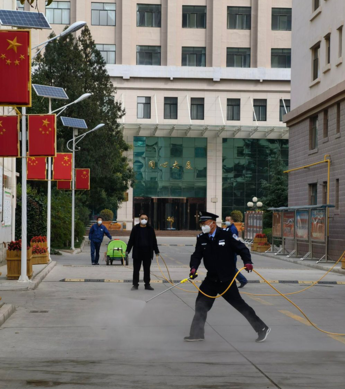还有值得点赞的是,默默工作在学院疫情防控一线的工作人员,他们每天在坚守岗位、认真值班值守,按时在全院区进行无缝隙大规模消杀作业,多频次对小区出入口、单元门口、电梯轿厢及按钮、垃圾箱等重点区域进行定时消毒。