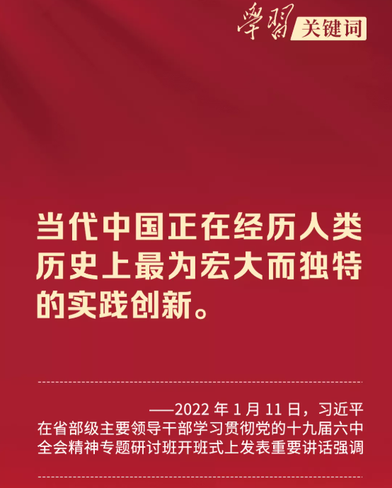 在开班式上发表的重要讲话中,习近平总书记立足当下,作出深刻判断,“当代中国正在经历人类历史上最为宏大而独特的实践创新”。