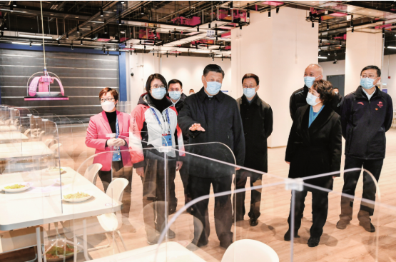 2022年1月4日,中共中央总书记、国家主席、中央军委主席习近平在北京考察2022年冬奥会、冬残奥会筹办备赛工作。图为1月4日上午,习近平在北京冬奥会、冬残奥会主媒体中心智慧餐厅,察看智能餐饮设备运行情况。图/新华社记者 谢环驰 摄