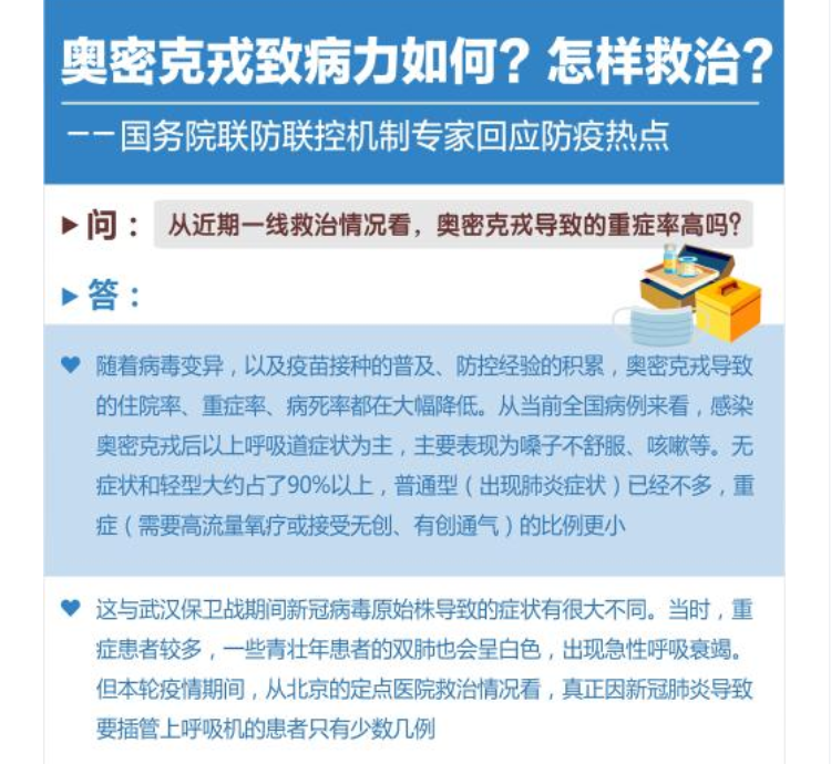 1.问:从近期一线救治情况看,奥密克戎导致的重症率高吗?